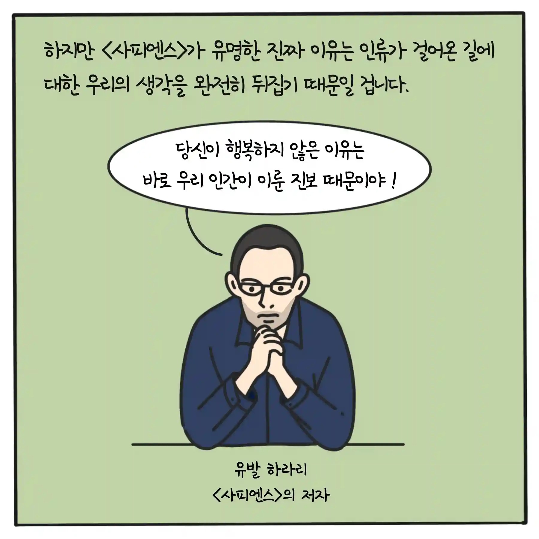 시간을 절약한다고 생각한 발명들이, 삶의 속도를 과거보다 열 배 빠르게 만들어버렸습니다. 그래서, 우리의 일상에는 불안과 걱정이 넘쳐납니다. - 유발 하라리